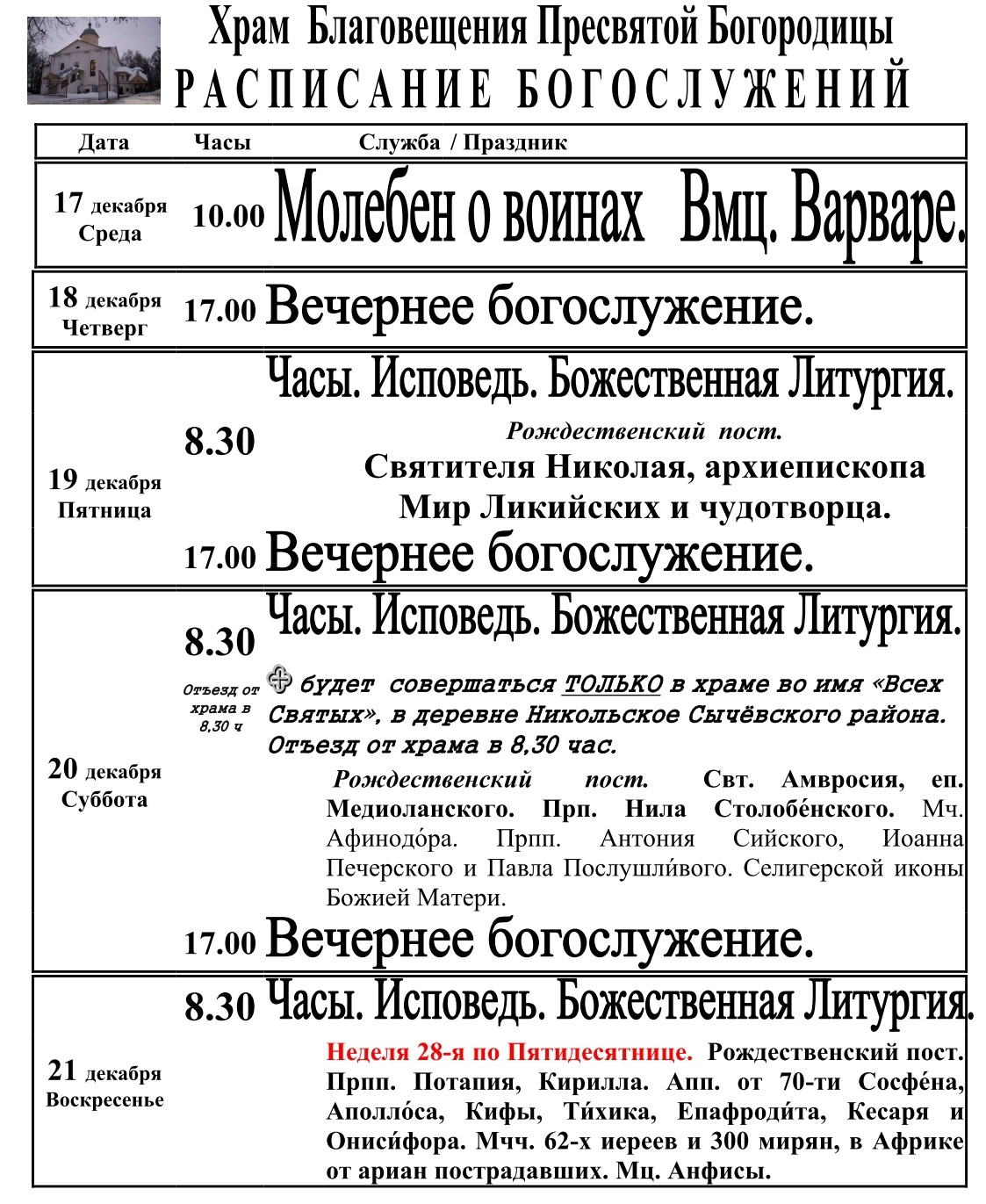 Расписание.
